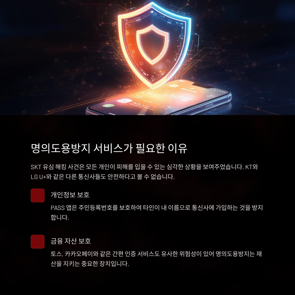 각 통신사의 보안 취약점이 드러나면서, KT와 LG U+와 같은 다른 통신사들 역시 안전하다고 볼 수 없는 상황입니다. 이처럼 누구에게나 일어날 수 있는 명의 도용 문제는 이제 더 이상 남의 일이 아닙니다.