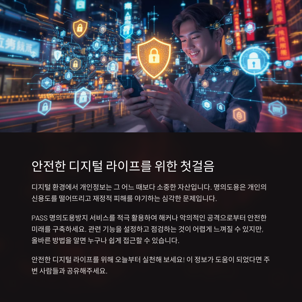 최근 SKT의 유심 해킹 사건은 많은 이들에게 충격을 주었으며, 이에 따라 명의도용방지 서비스의 중요성이 더욱 강조되고 있습니다. 도대체 명의도용이란 무엇이며, 우리가 어떻게 이를 방지할 수 있을까요? 이 글에서는 PASS 앱을 활용하여 명의도용의 위험 요소를 사전에 차단하는 방법에 대해 자세히 알아보겠습니다.
